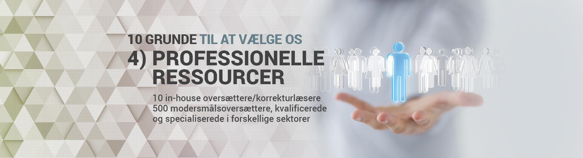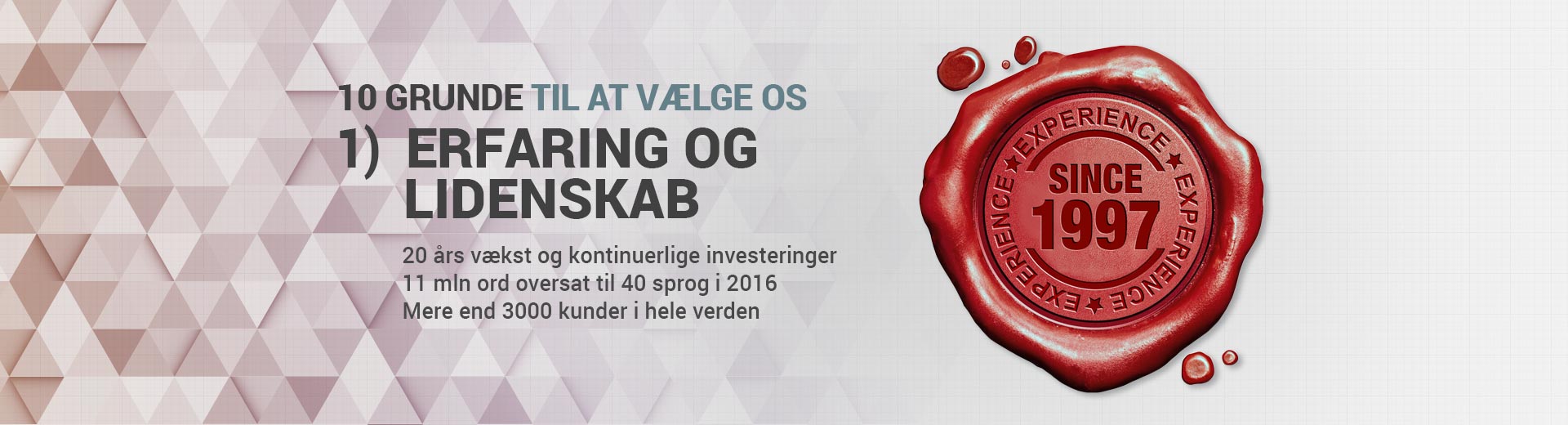 10 in-house oversættere/korrekturlæsere500 modersmålsoversættere, kvalificerede og specialiserede i forskellige sektorer