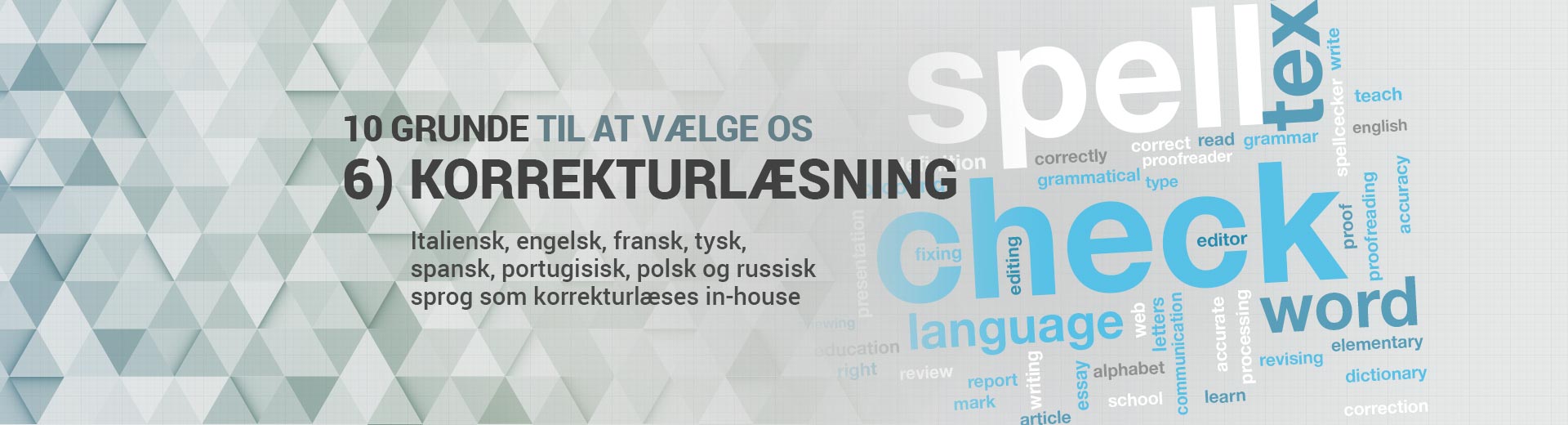 Italiensk, engelsk, fransk, tysk, spansk, portugisisk, polsk og russisk sprog som korrekturlæses in-housePRISER GENNEMSIGTIGE OG KONKURRENCEDYGTIGE