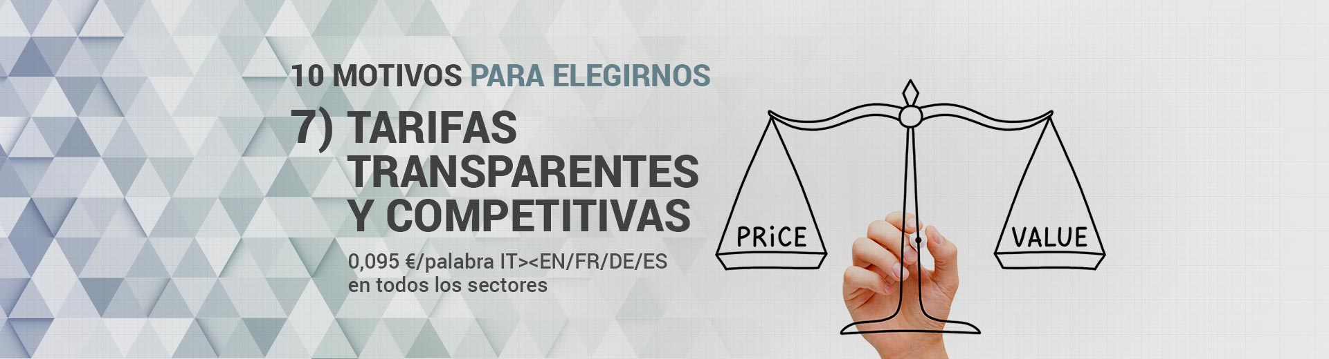 Italiano, inglés, francés, alemán, español, portugués, polaco y ruso son los idiomas que se revisan internamenteTARIFAS TRANSPARENTES Y COMPETITIVAS