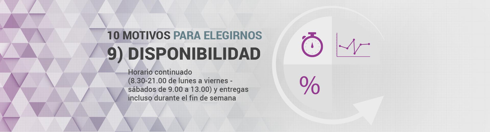 Horario continuado (8.30-18.30 de lunes a viernes) y entregas incluso durante el fin de semanaASISTENCIA COMPLETA