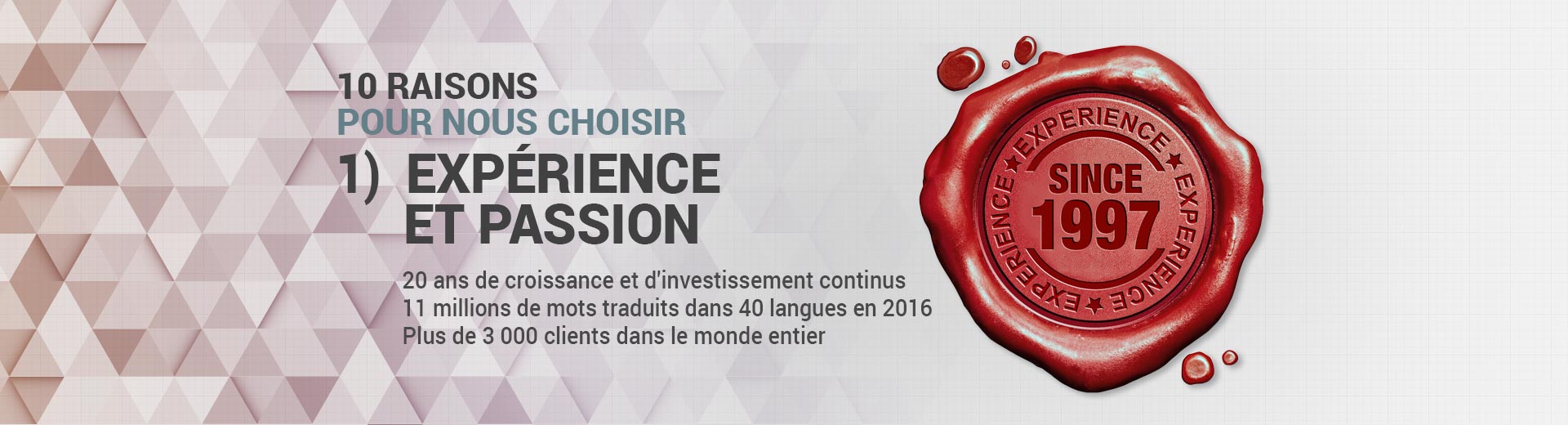 10 traducteurs/réviseurs internes500 traducteurs de langue maternelle, qualifiés et spécialisés dans différents secteurs