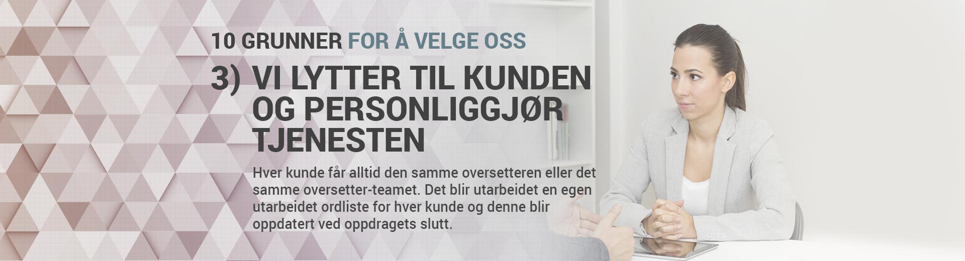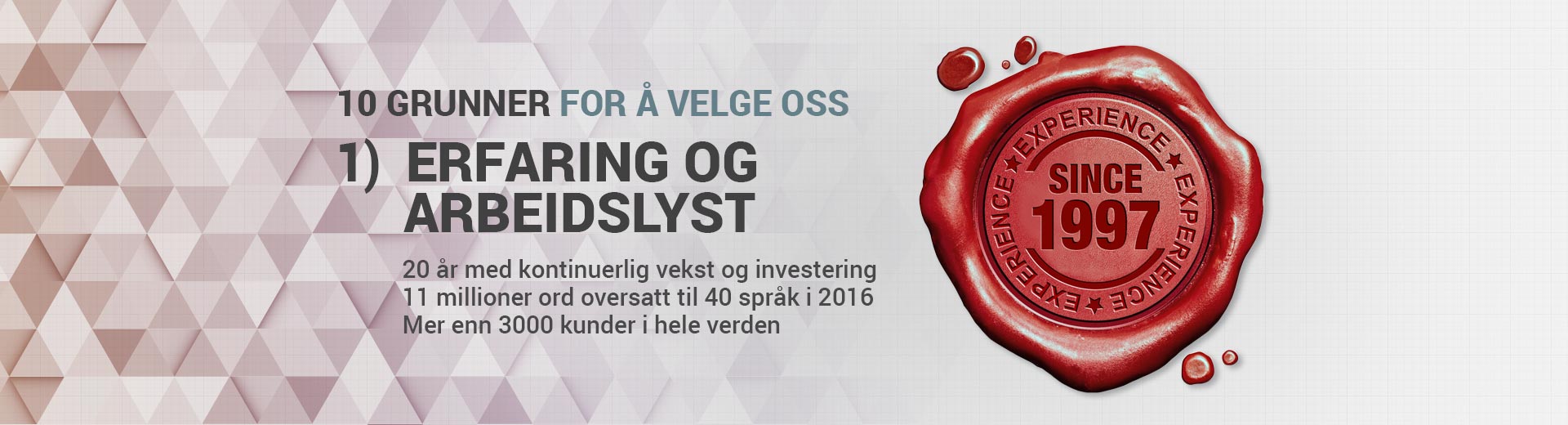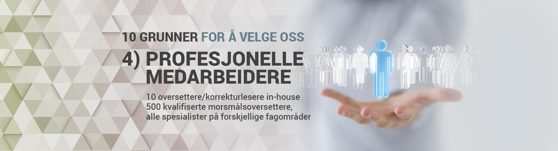 10 oversettere/korrekturlesere in-house500 kvalifiserte morsmålsoversettere, alle spesialister på forskjellige fagområder