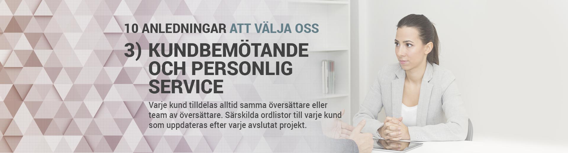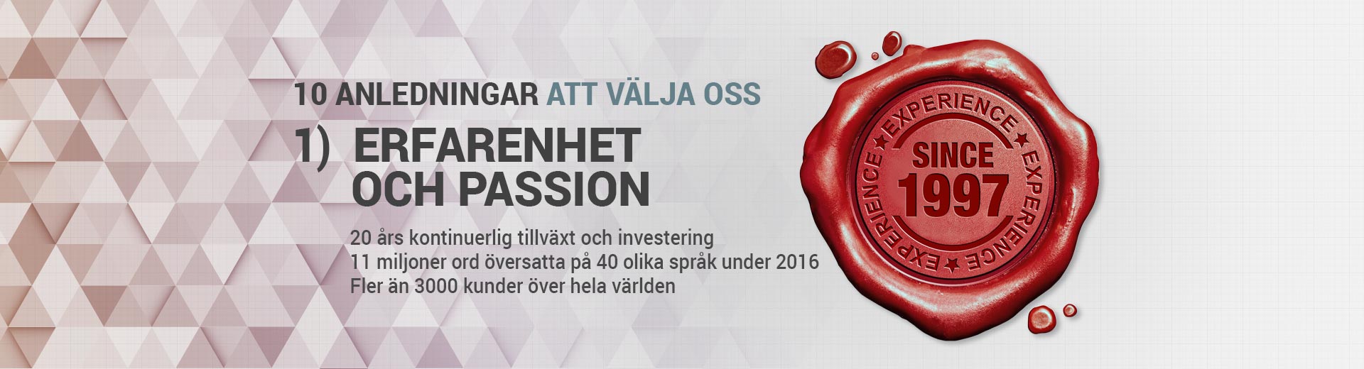 Varje kund tilldelas alltid samma översättare eller team av översättare.Särskilda ordlistor till varje kund som uppdateras efter varje avslutat projekt.
