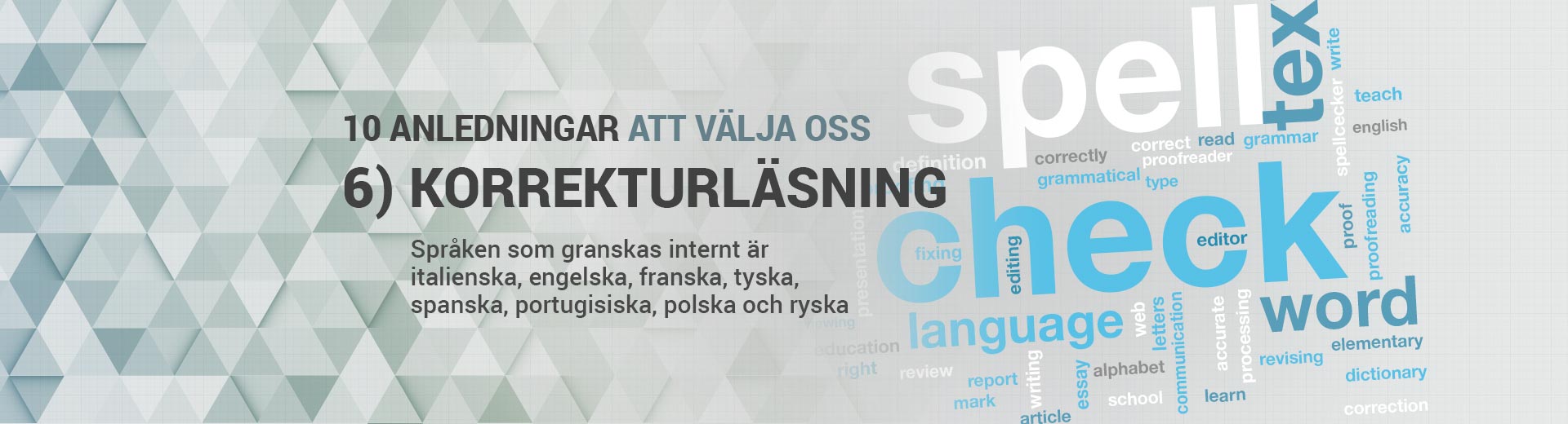 Vi erbjuder våra kunder teknik som garanterar enhetlighet vad beträffar stil och terminologiKORREKTURLÄSNING