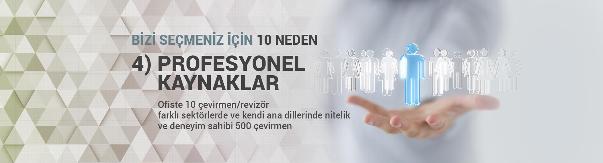 Ofiste 10 çevirmen/revizörfarklı sektörlerde ve kendi ana dillerinde nitelik ve deneyim sahibi 500 çevirmen